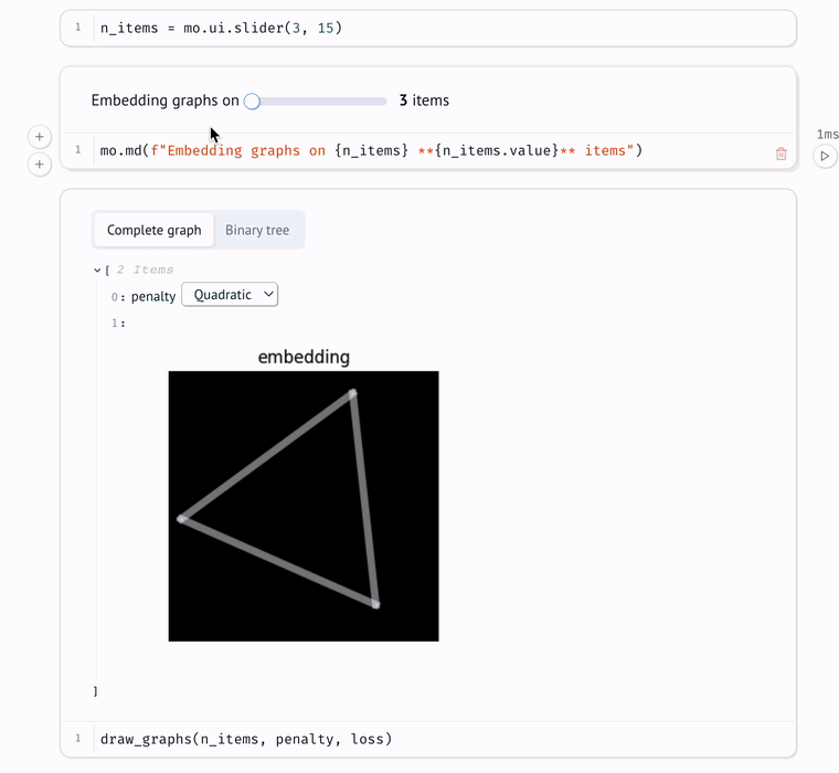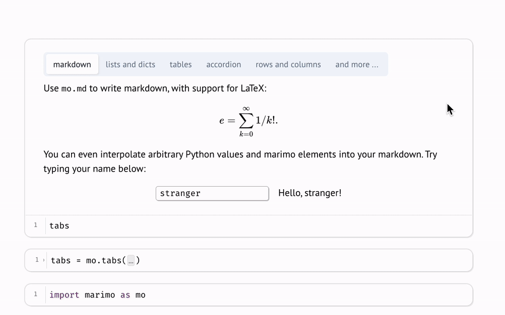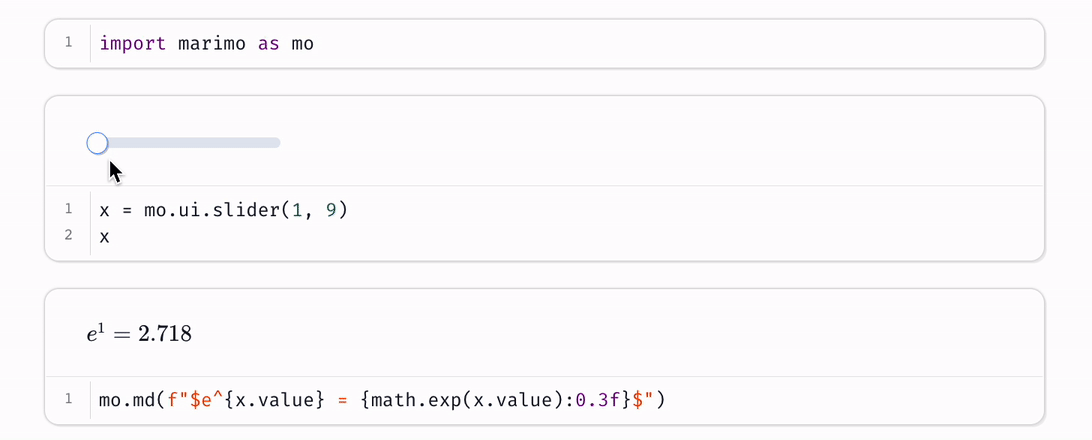 reactive: marimo runs automatically, like a spreadsheet, based on global variables
